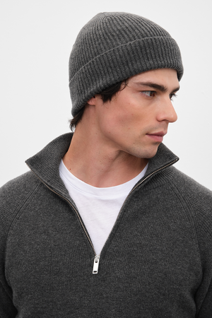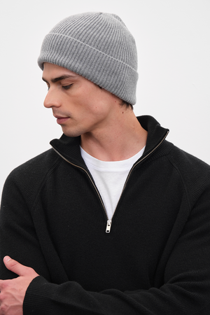 Ekolojik olarak sürdürülebilir, yumuşak dokulu, hipoalerjenik, lüks İtalyan extra-fine merino yününden örülen, ribana örgülü, unisex bere.