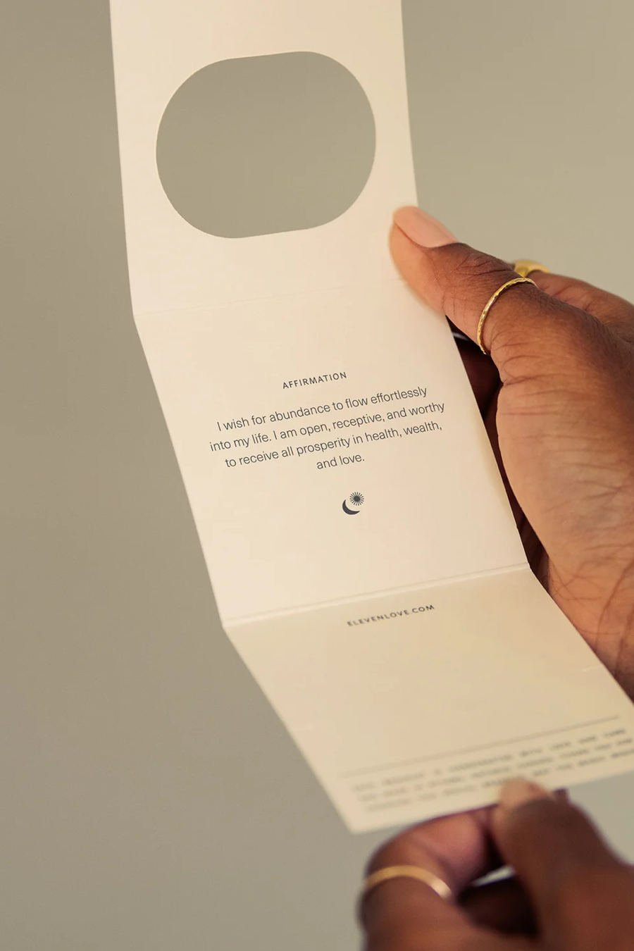 Sevdiğiniz birinden bilekliğinizi bileğinize rahatça bağlamasını isteyin. Saat 11:11'de dileğinizi tutun, kartta yazan olumlama cümlesini okuyun veya sevdiğiniz birinin size okumasını sağlayın. Bileklik takıldıktan sonra, dileğinizi dileyin. Dileğinizin gerçekleştiğini kabul etmek için bir an ayırın ve evrene teşekkür edin.