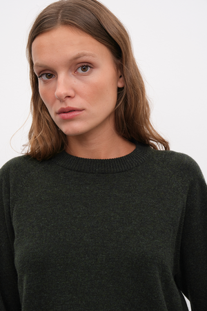 Ekolojik olarak sürdürülebilir, yumuşak dokulu, hipoalerjenik, lüks İtalyan cashmere ve merino karışımı yünden örülen, reglan kollu crop triko.