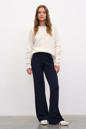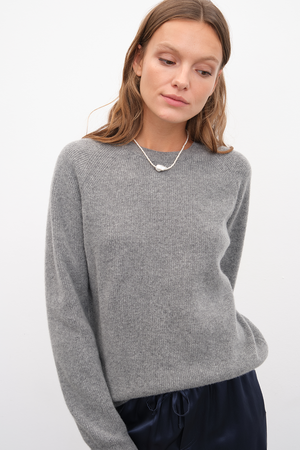 Ekolojik olarak sürdürülebilir, yumuşak dokulu, hipoalerjenik, lüks İtalyan cashmere ve merino karışımı yünden örülen, reglan kollu, ribanalı triko.