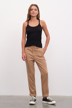 Kendi geliştirdiğimiz yumuşak tuşeli, ribanalı ve esnek yapılı %94 cotton %6 elastan içerikli kumaşımızdan ürettiğimiz, ince askılı, sporcu sırtlı kaşkorse fitted atlet.