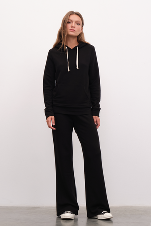 Ana görseldeki supersoft modal fleece unisex hoodie, supersoft modal fleece bol paçalı eşofman altı ve supersoft modal fleece jogger eşofman altı ile tamamlanmıştır.