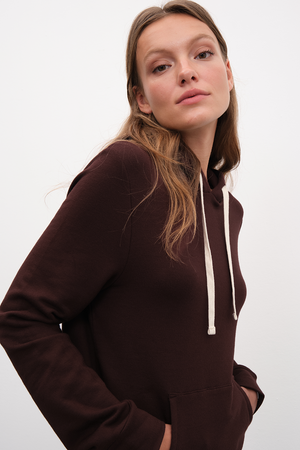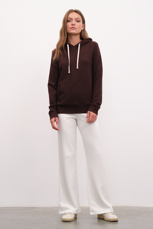 Rahatlık ve hafiflikle birlikte, vücudu ideal ısıda tutmayı hedefleyerek geliştirdiğimiz, nefes alabilen ve ekolojik olarak sürdürülebilir modal/cotton karışımı kumaşımızdan, yumuşak tuşeli ve esnek, iç yüzeyi fleece/şardonlu, kordonlu, kapüşonlu unisex fitted sweatshirt.