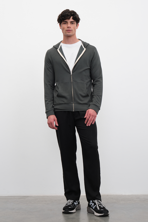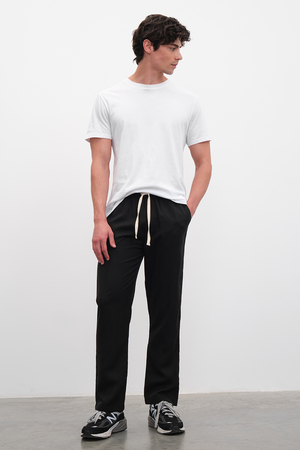 Rahat şıklığın ön planda olduğu tüm kombinasyonların temel alt parçası olacak, yeni TENCEL™ Lyocell içerikli premium kumaşımızdan, beli lastikli ve kordonlu, yanları cepli, düz paçalı, pull-on kumaş pantolon.