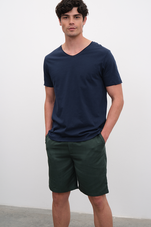 Ana görseldeki pull-on TENCEL™ short, cotton linen unisex t-shirt ile tamamlanmıştır.