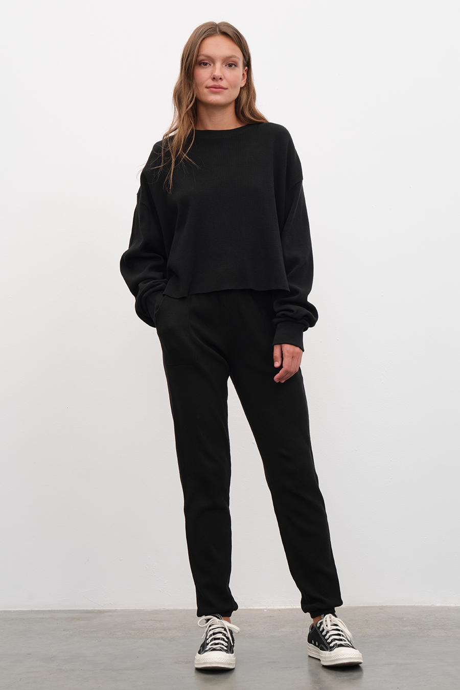 Signature waffle örgülü pamuklu kumaşımızdan, cepli jogger/eşofman altı.