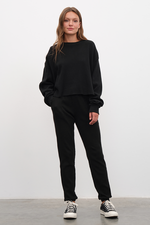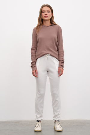 Ana görseldeki waffle cotton jogger eşofman altı, waffle cotton unisex hoodie ile tamamlanmıştır.