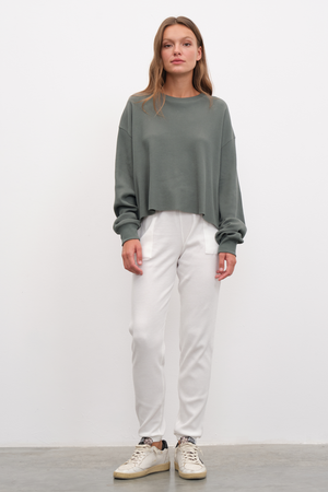 -Waffle Cotton Cropped Oversize Sweatshirt