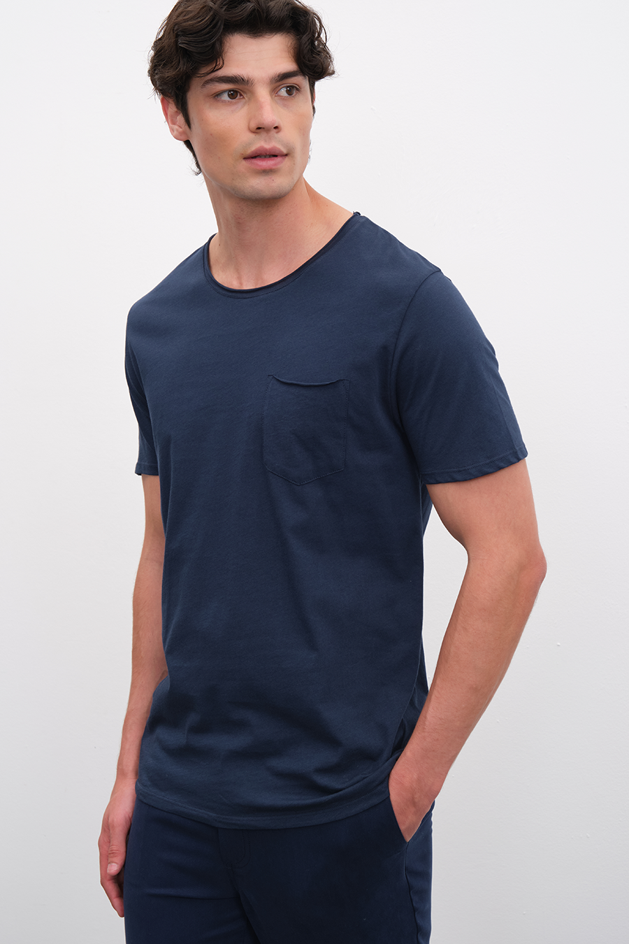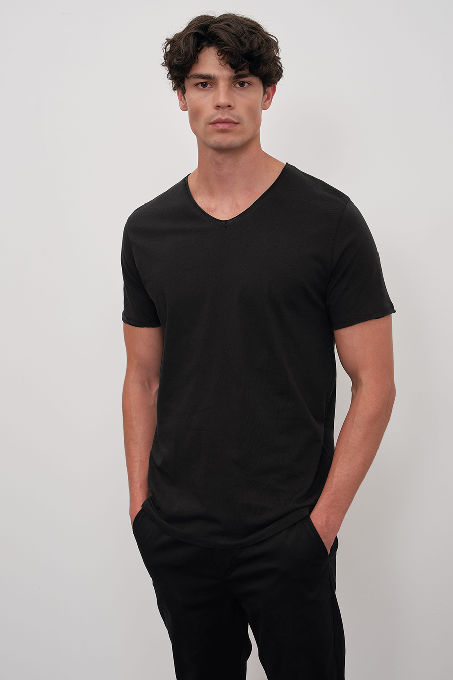 3,695.00 TLSırt Dikiş Detaylı ve Yan Yırtmaçlı V Yakalı Cotton/Modal T-shirt