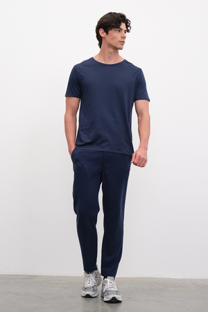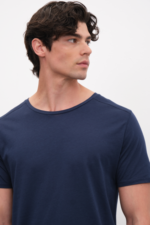 Dökümlü ve ipeksi dokulu signature cotton ve modal karışımı kumaşımızdan, omuzları vurgulayan ve sırtı dik ve geniş gösteren dikiş detaylarının ön plana çıktığı, bisiklet yakalı, fit kalıplı, lightweight t-shirt.