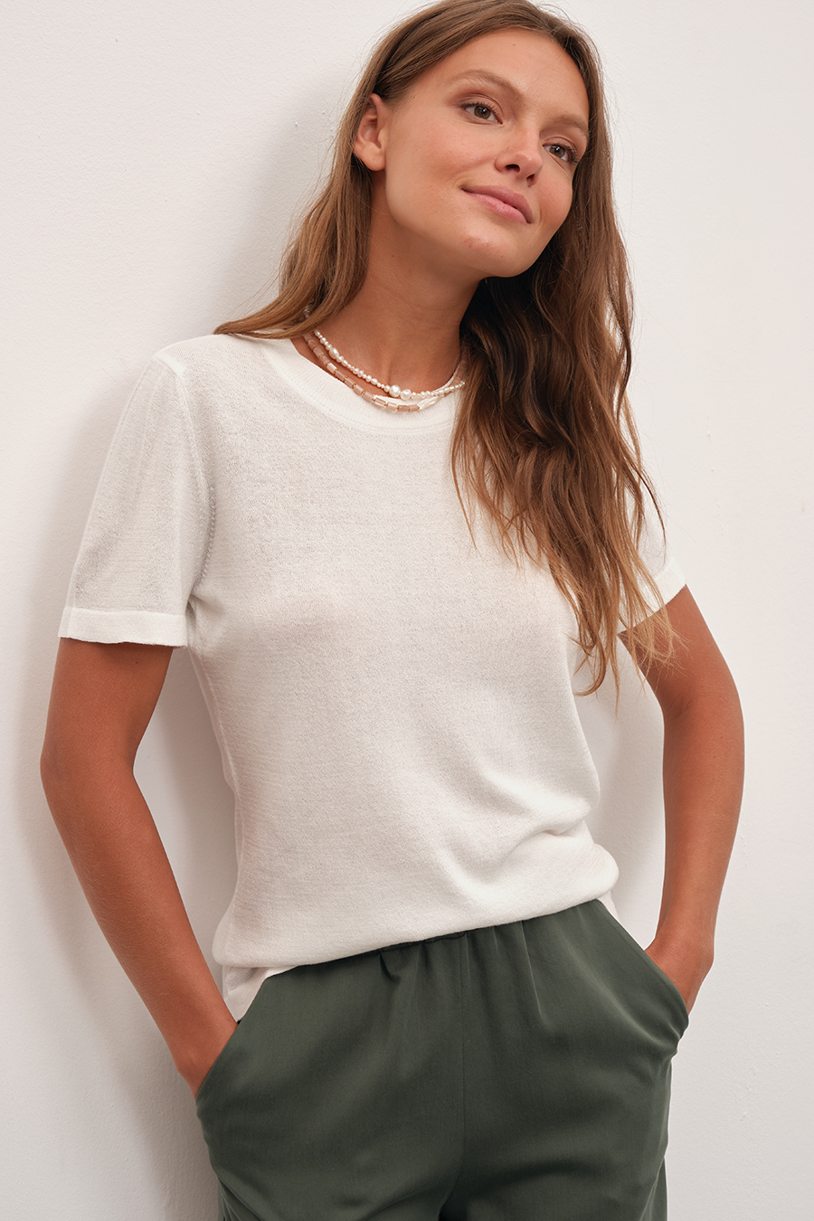 Polo Yakalı Organik Cotton Kroşe Triko T-shirt
