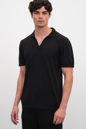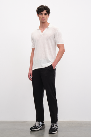 -Polo Yakalı Cotton Linen Lightweight Triko