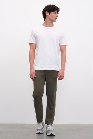 Rahat şıklığın ön planda olduğu tüm kombinasyonların temel alt parçası olacak, yeni TENCEL™ Lyocell içerikli premium dokuma kumaşımızdan, yanları cepli, düz paçalı, pull-on kumaş pantolon.