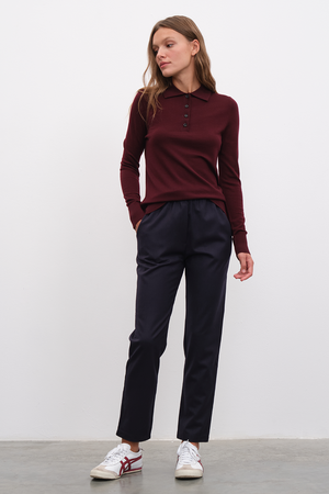 Sonbahar/Kış kombinasyonlarının ana alt parçası olacak, lightweight premium %100 yün kumaşımızdan, beli lastikli, yanları cepli, lightweight, pull-on pantolon.