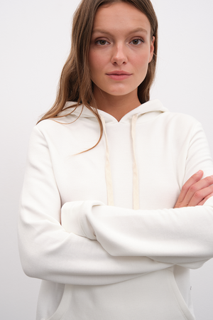 Rahatlık ve hafiflikle birlikte, vücudu ideal ısıda tutmayı hedefleyerek geliştirdiğimiz, nefes alabilen ve ekolojik olarak sürdürülebilir modal/cotton karışımı kumaşımızdan, yumuşak tuşeli ve esnek, iç yüzeyi fleece/şardonlu, kordonlu, kapüşonlu unisex sweatshirt.