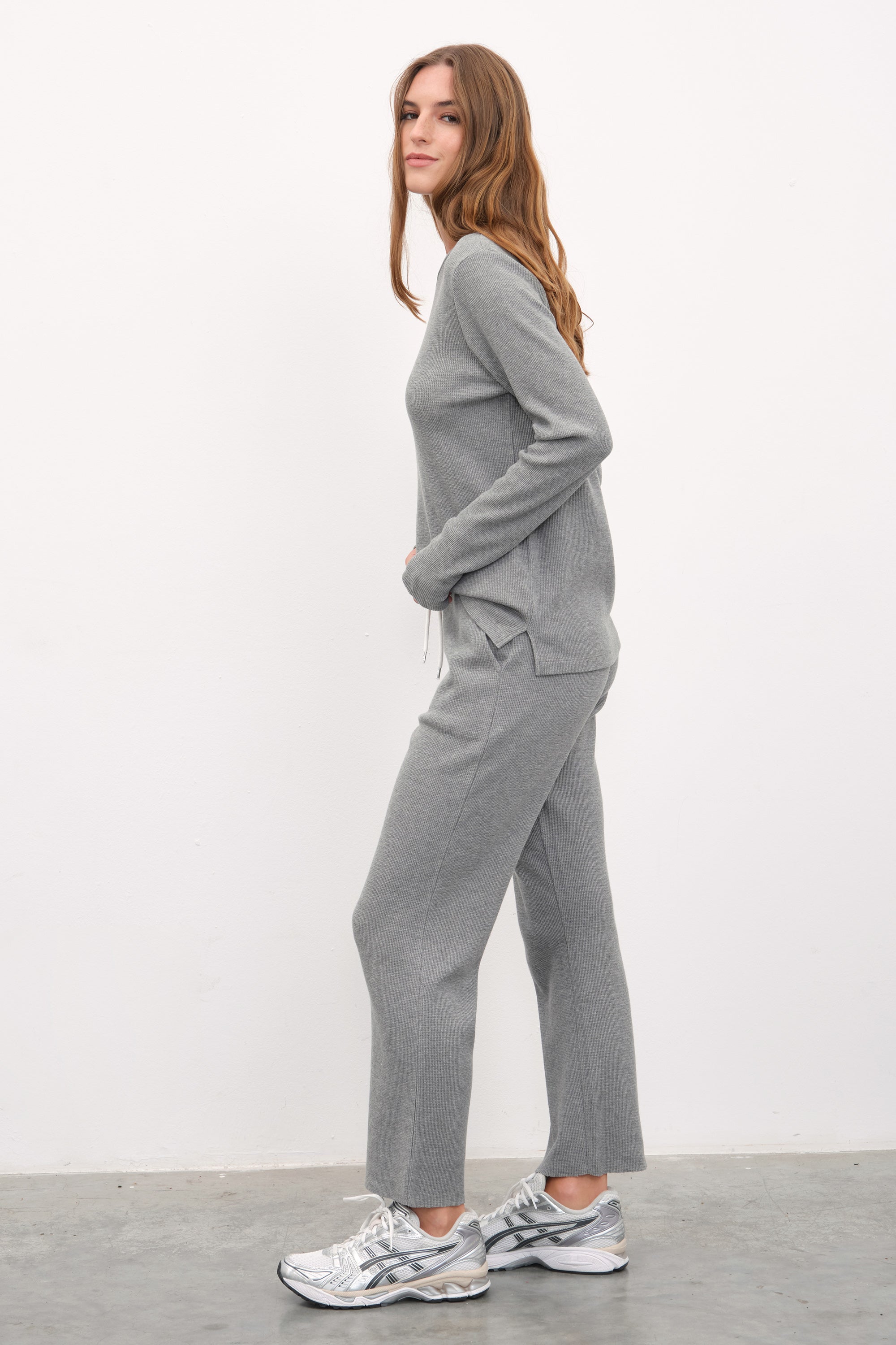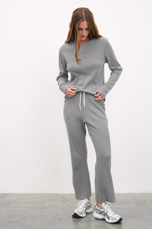 Gri melanj eşofman altı görselindeki modelin boyu: 1.75 cm - kilo: 55 kg - beden: 36 - ürün bedeni: xs