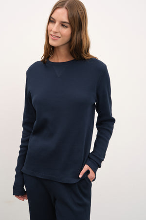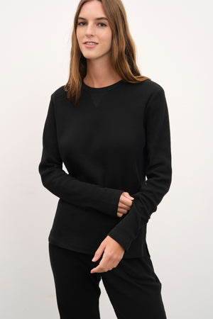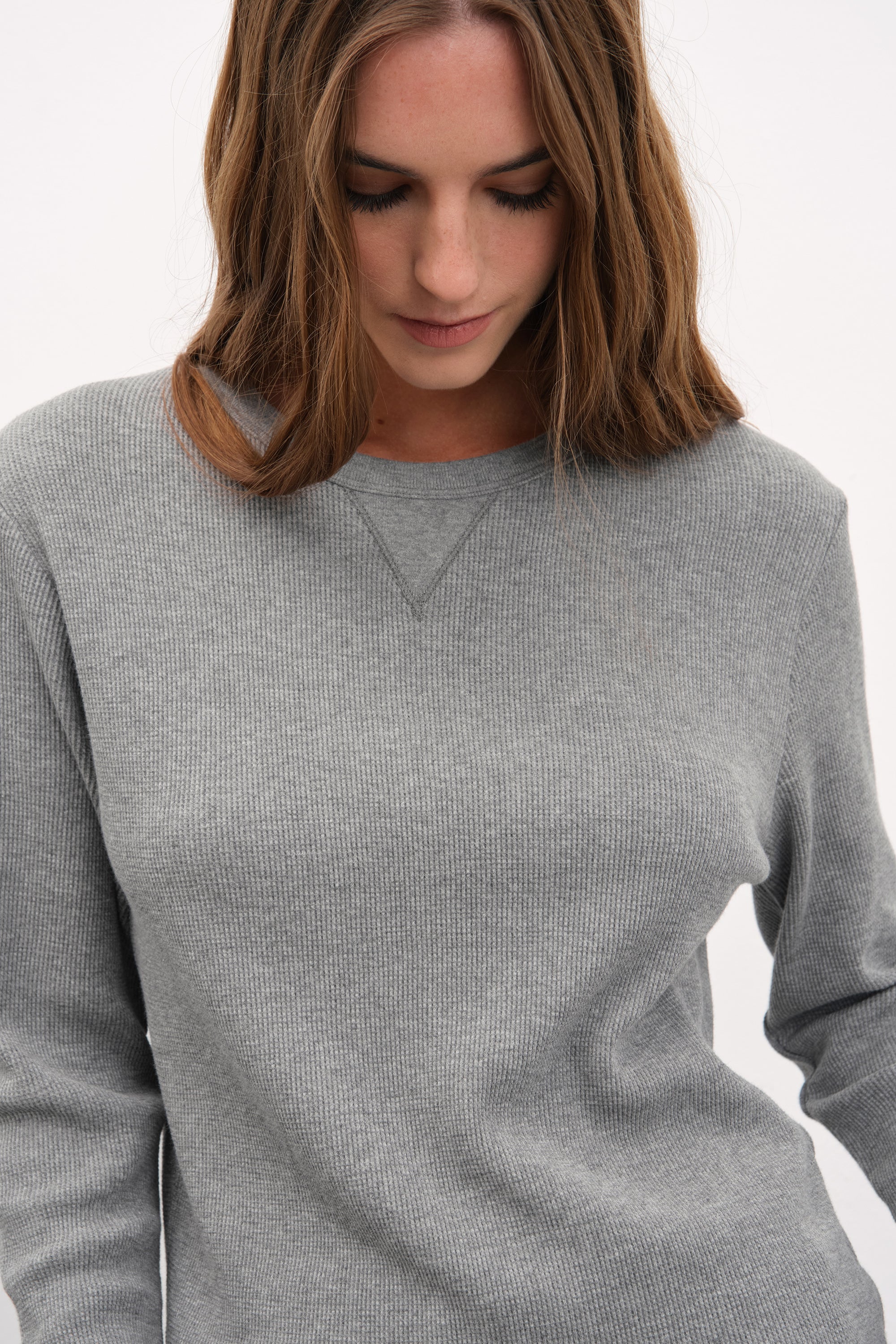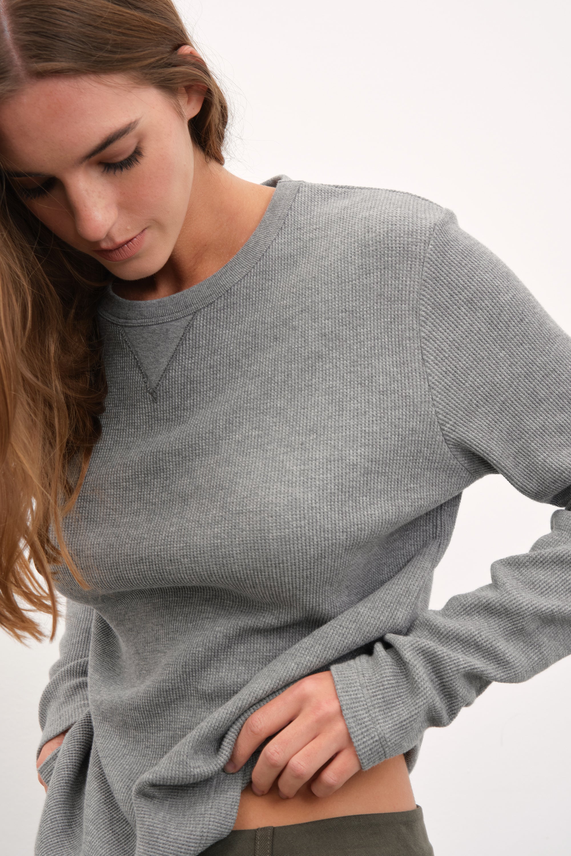 İkonik Amerikan t-shirtlerinden esinlendiğimiz, signature waffle örgülü pamuklu kumaşımıza uyarladığımız, uzun kollu, bisiklet yakalı unisex t-shirt.